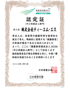 この度、昨年に引き続き、従業員の健康管理を経営的な視点で考え、健康の保持・増進につながる取組を戦略的に実践する「健康経営」の取組が優良であると認められ、「健康経営優良法人2026(中小規模法人部門)」に認定されました。